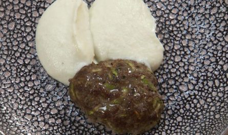 1. Замариновать мясо в смеси горчицы, соли, масла.